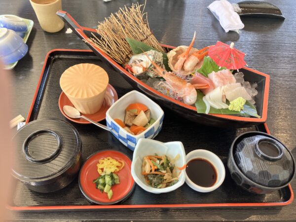 前の週に福井で美味しい海鮮丼を食べているので屋形船に盛られているお刺身もなんだか物足りなく感じました。